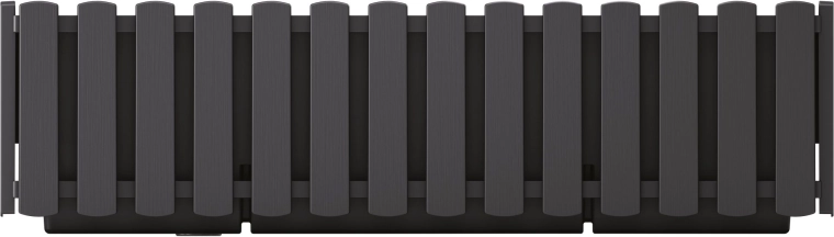 Élégante jardinière de balcon couleur anthracite au design effet lattes de bois, alliant style et praticité pour tout balcon ou terrasse. Grâce au support métallique intégré, l’installation est simple et sûre. La structure en plastique stabilisée UV assure une longue durée de vie avec un entretien minimal, tandis que le système d’arrosage maintient les plantes idéalement hydratées.