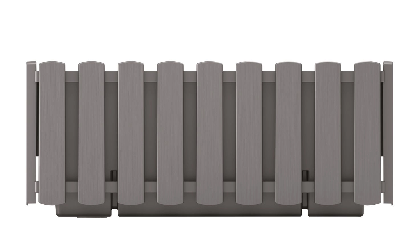 Le décor rappelant des lattes de bois confère à la jardinière une allure rustique mais épurée, qui se démarque sur un balcon, une terrasse ou un appui de fenêtre.