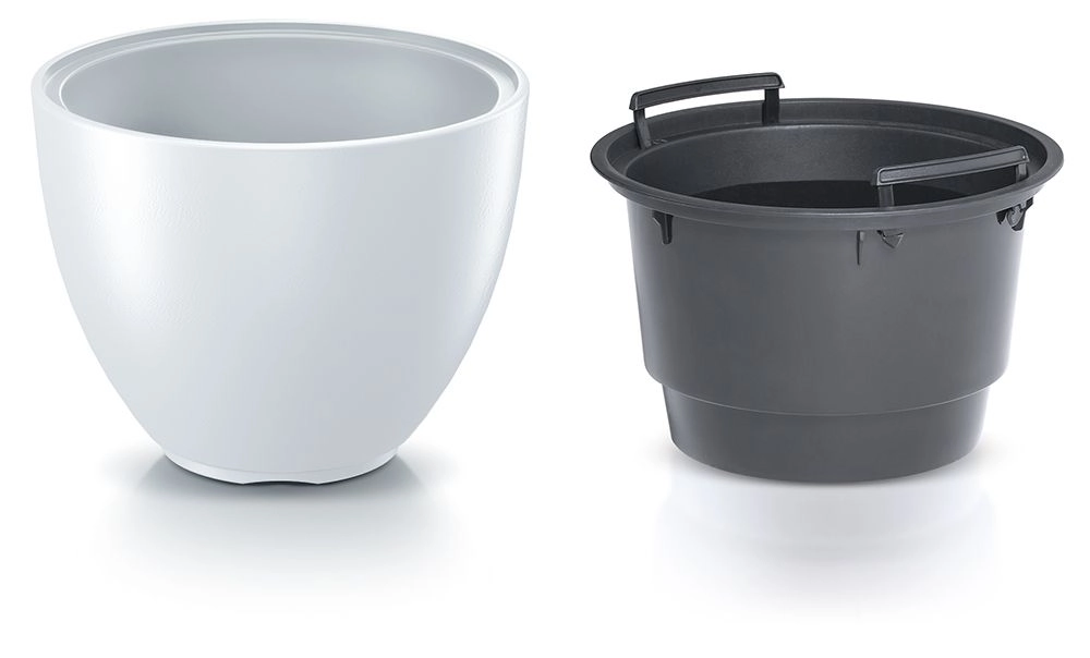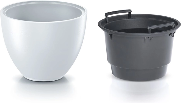 L’insert en plastique pratique avec poignées permet un rempotage rapide et un retrait aisé de la plante pour l’arrosage ou l’entretien – sans désordre ni effort inutile.