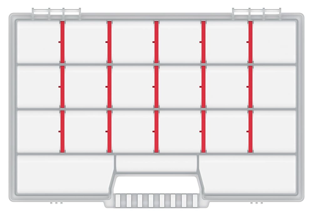 Un agencement modulable est assuré par des cloisons amovibles, afin d’ajuster simplement la taille des compartiments selon vos besoins. La poignée solide garantit un transport confortable et sécurisé, que ce soit à la maison, au garage ou en déplacement.