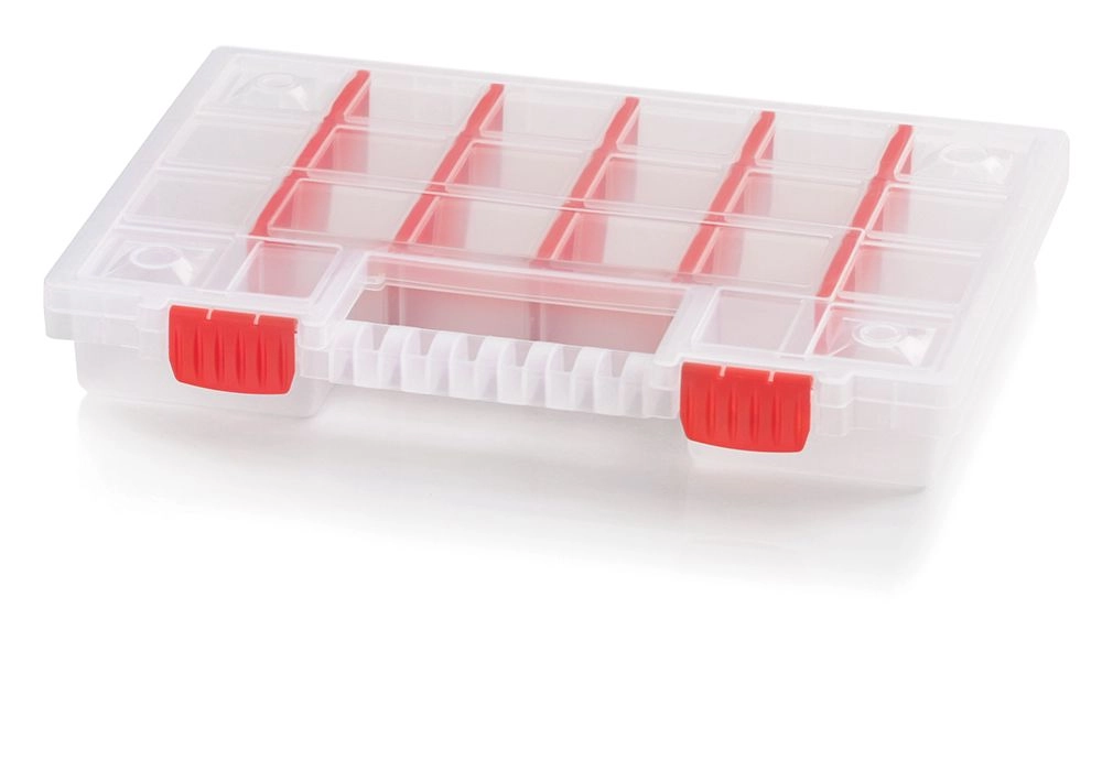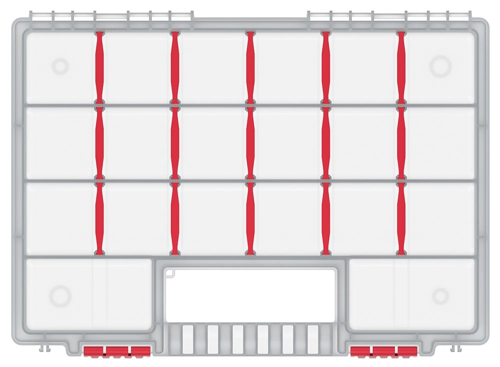 Gardez de l’ordre dans les petites pièces de fixation avec l’organisateur NORT. Grâce à ses 22 compartiments et à ses cloisons amovibles, vous créez aisément une configuration qui répond précisément à vos besoins. Le couvercle transparent permet un contrôle immédiat du contenu, pour trouver rapidement ce que vous cherchez.