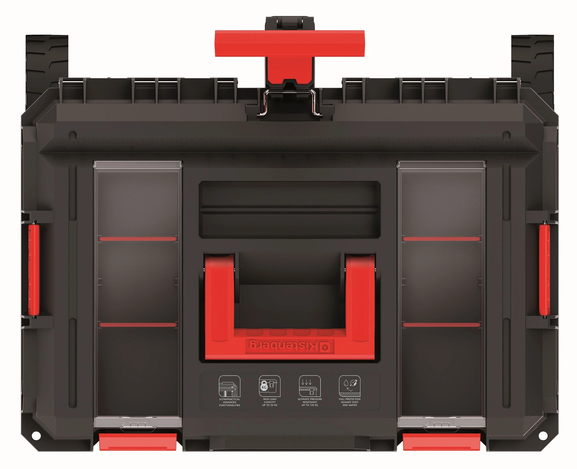 Le coffre à outils Kistenberg X BLOCK LOG est conçu pour les professionnels qui exigent une protection fiable et un transport aisé d’outillage lourd. Son joint d’étanchéité intégral protège le contenu de l’humidité et de la poussière, tandis que la structure nervurée robuste renforce la résistance aux chocs et aux sollicitations mécaniques.