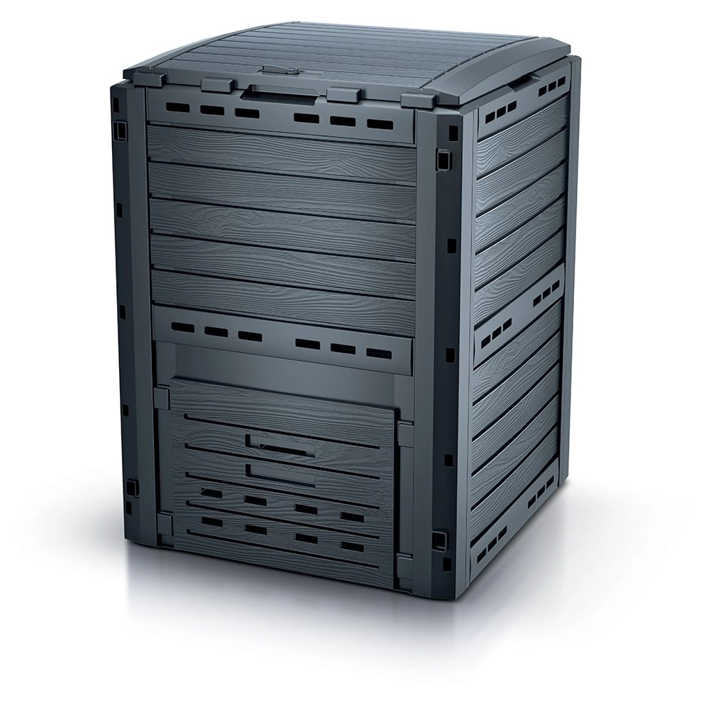 Le composteur COMPOGREEN WOODY 280 L est une solution fiable pour le compostage domestique des feuilles, de l’herbe coupée et des déchets de cuisine. Les panneaux en plastique robuste à l’aspect bois, en coloris anthracite, s’intègrent parfaitement au jardin tout en résistant à la pluie, au gel et aux UV. Grâce à une ventilation bien pensée, le compost mûrit rapidement et vous obtenez un humus de qualité pour massifs et pelouse.