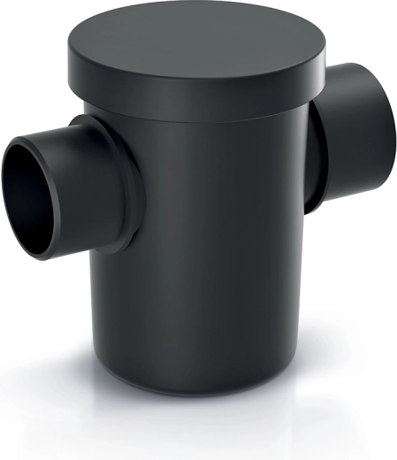 Le filtre se compose de trois éléments clés : un corps avec orifices latéraux pour le raccordement des conduites, un panier amovible pour la rétention des impuretés et un couvercle supérieur offrant un accès pratique pour l’entretien. La construction en plastique résistant garantit une longue durée de vie et un fonctionnement sûr même en conditions variables.