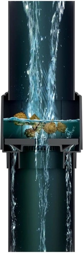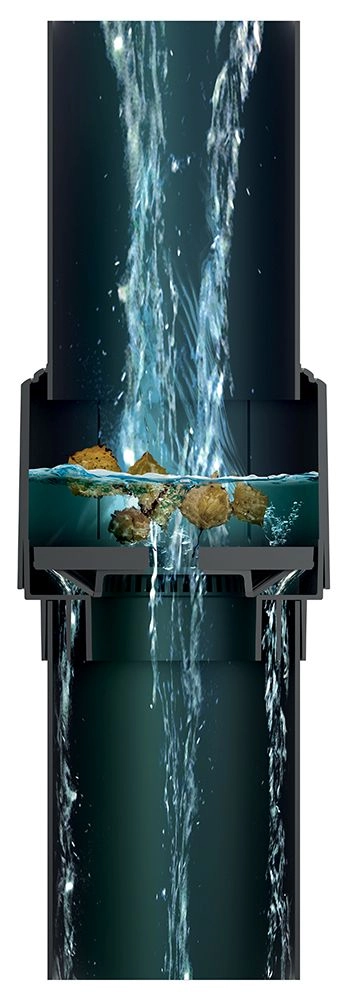 - Filtration efficace des grosses impuretés – les feuilles, brindilles et sédiments restent hors de la cuve.
