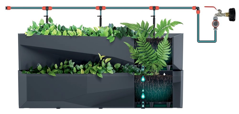 - Possibilité d’ajouter un arrosage goutte-à-goutte (non inclus)