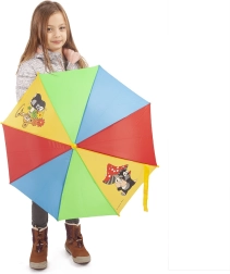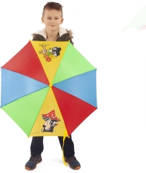 Finis les moments de panique avant l’averse – le parapluie pour enfants avec motif TAUPE est pratique, léger et sûr pour un usage quotidien. Les panneaux colorés aux illustrations joyeuses attirent le regard et la poignée incurvée jaune convient parfaitement aux petites mains.