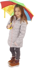 La fonction d’ouverture automatique permet aux enfants de déployer le parapluie d’une simple pression. La structure en métal et plastique assure la stabilité au vent, tandis que la toile repousse efficacement les gouttes. Idéal pour les enfants à partir de 3 ans, pour la maternelle, l’école ou les balades.