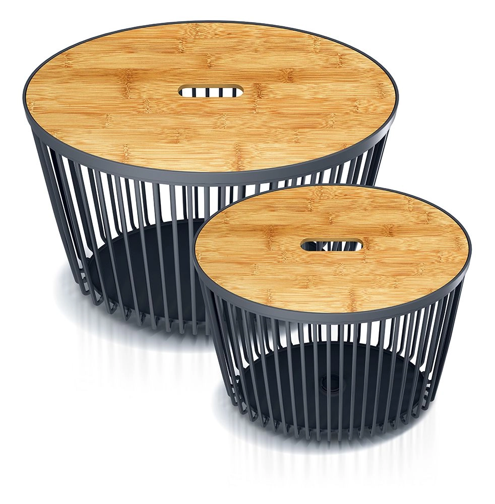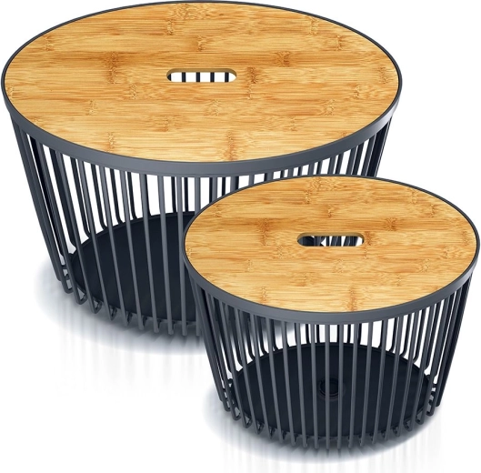 Pratique ensemble de deux paniers ovales CLUBO de 30 et 55 litres en élégant coloris anthracite avec couvercles en bambou naturel. Idéal pour le tri du linge, le rangement des jouets ou l’organisation de la maison. Allie design moderne et fonctionnalité, entretien facile et look intemporel. Utilisation polyvalente, alliage stylé de bambou et de plastique et deux capacités pour une flexibilité maximale.