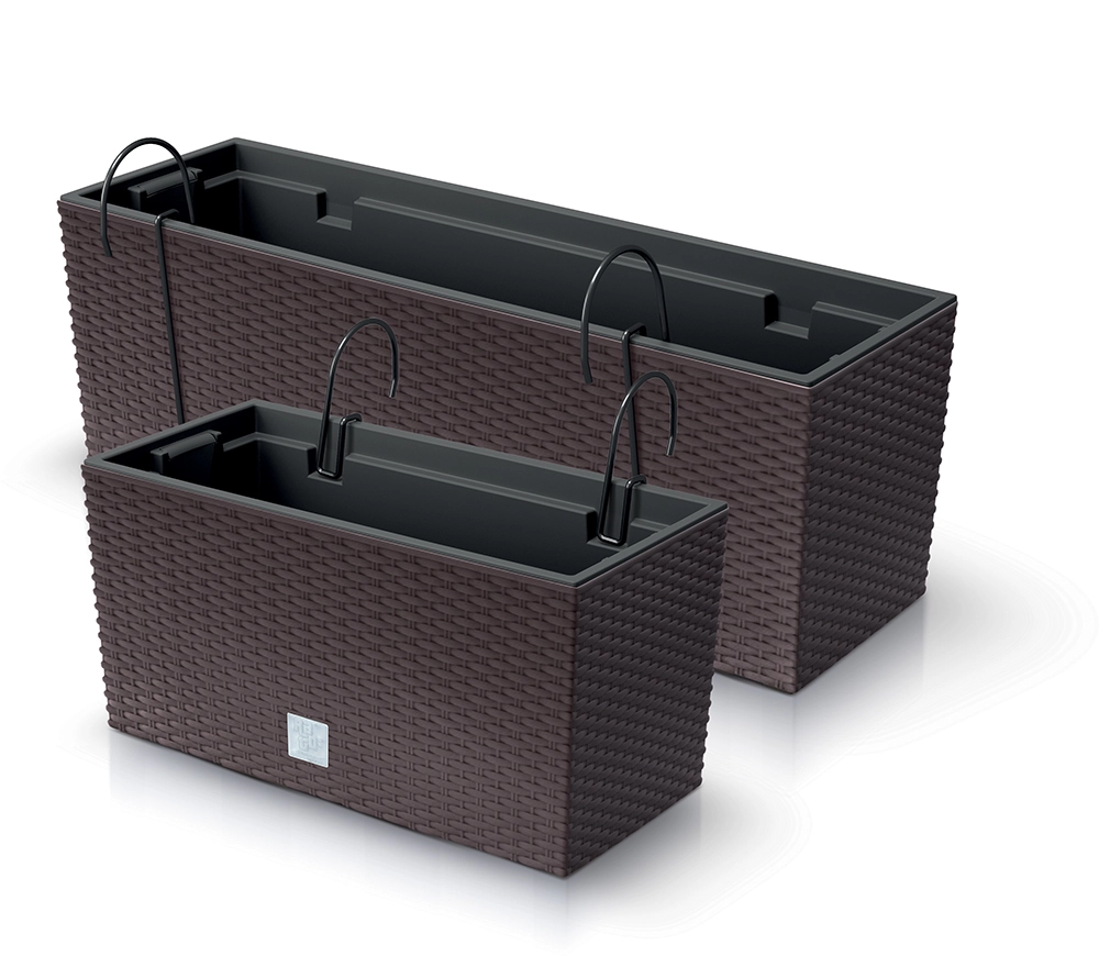 Des crochets métalliques de suspension sont inclus pour fixer rapidement et en toute sécurité la jardinière sur la plupart des garde-corps de balcon.