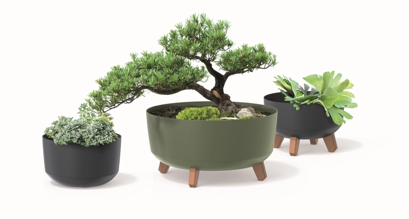 La teinte vert terre et les lignes pures s’harmonisent facilement avec tout intérieur ou espace extérieur et laissent les plantes s’exprimer.