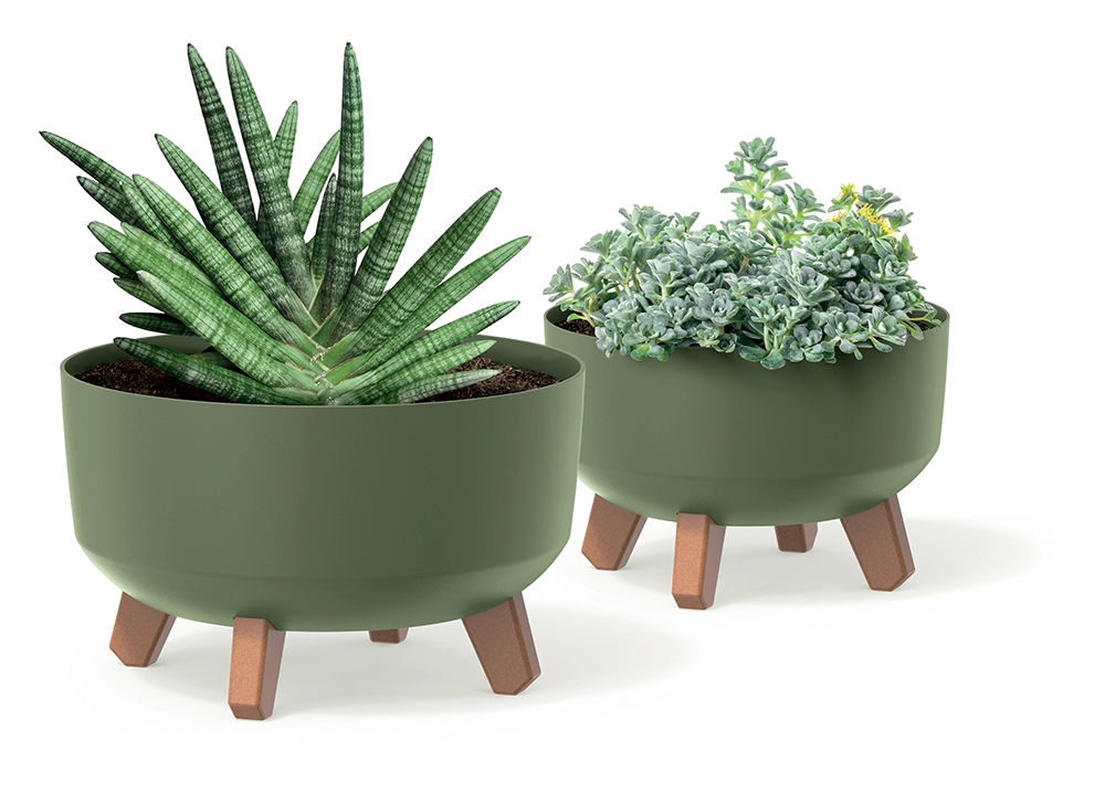 Gracia Low est un cache-pot design qui associe une coupe minimaliste en anthracite mat à des pieds courts effet bois. Grâce à sa base surélevée, il paraît léger, respire mieux et offre un support stable aux plantes. Le plastique résistant supporte un usage quotidien, demande peu d’entretien et reste léger pour être déplacé facilement selon les conditions de lumière.