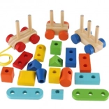 Ce jouet à tirer et ensemble de construction est un excellent moyen pour les enfants de développer leurs compétences et leur imagination. Le petit train en bois coloré se compose de trois châssis robustes et de nombreuses pièces qui peuvent être assemblées à votre guise.