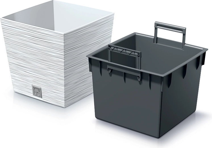 La surface texturée à rainures horizontales confère au cache-pot un look moderne, améliore la prise en main et se nettoie facilement.
