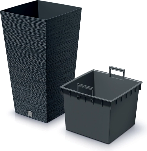 Le pot de fleurs carré et haut Furu Square en anthracite séduit par son motif nervuré moderne et sa forme élégante évasée. Idéal pour les graminées ornementales, les herbes aromatiques et les petits arbustes. Le plastique résistant facilite la manipulation tout en supportant parfaitement la pluie, le soleil et le gel.
