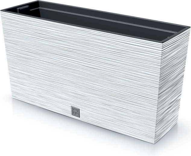 Élégante jardinière Furu M de 77 cm de longueur, en blanc raffiné, idéale pour balcon, terrasse et intérieur. Sa surface rainurée offre un look moderne et une meilleure stabilité. Le plastique résistant avec protection UV assure une longue durée de vie, tandis que la cuvette intérieure facilite la plantation et l’entretien.
