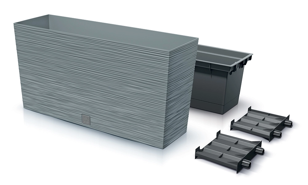 Jardinière nervurée en plastique avec insert 77 cm, gris béton