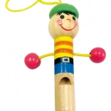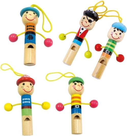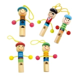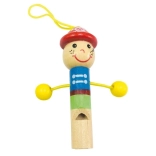 Un joyeux sifflet en bois en forme de bonhomme est un excellent outil pour développer l’ouïe des enfants et un accessoire ludique qui sert aussi de sifflet de signalisation ou de football.