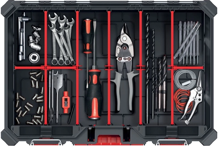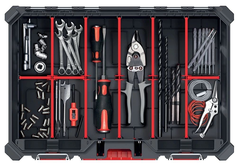 Vous cherchez une solution résistante et organisée pour stocker vos outils et petites pièces ? L’organiseur MSX aux dimensions 54,3 × 39 × 12,6 cm combine une structure solide en plastique durable, un couvercle transparent en polycarbonate pour une identification rapide et une fermeture sécurisée grâce aux charnières métalliques et aux verrous en ABS. Grâce à un joint de qualité, le contenu reste protégé de la poussière et de l’humidité – un choix idéal pour l’atelier, le service et l’usage domestique.