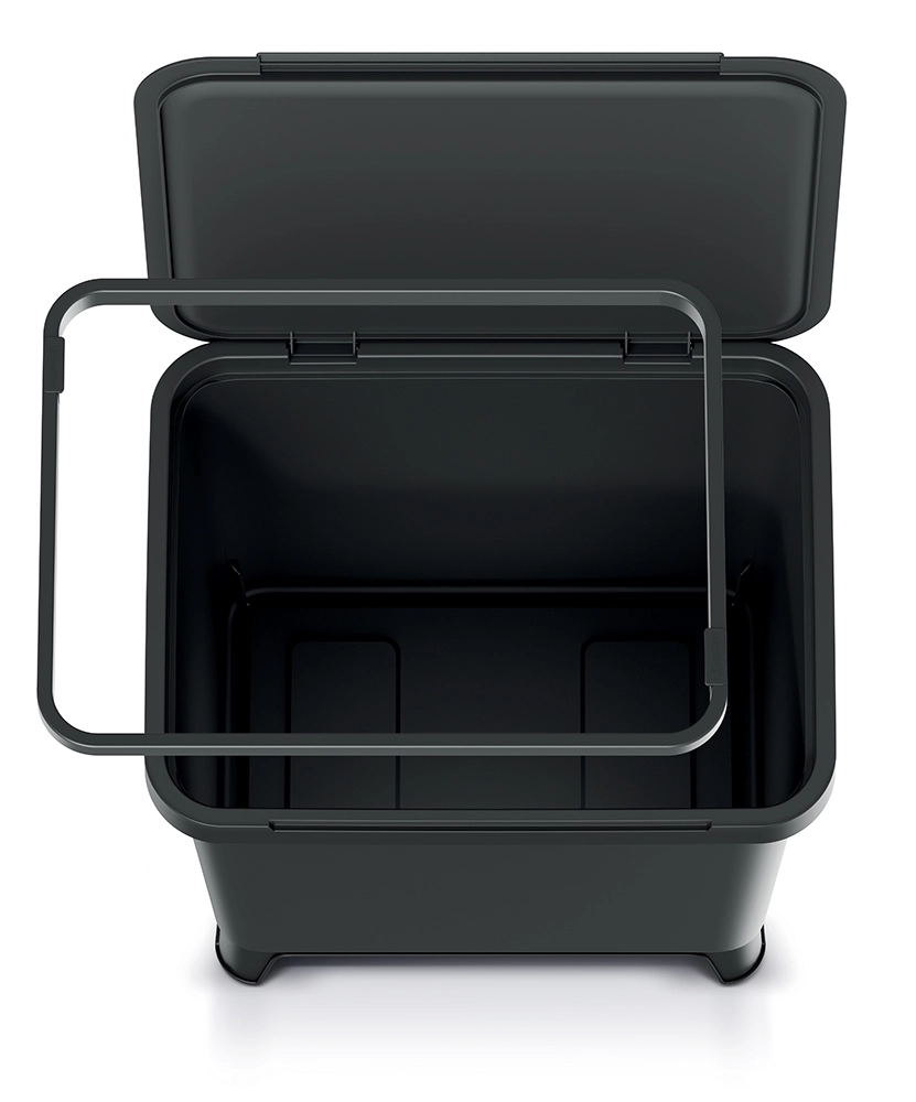 Poubelle élégante et pratique de 29 l en plastique recyclé, dans un noir raffiné. Ses dimensions compactes économisent de la place, le couvercle pivotant bloque efficacement les odeurs et le rebord solide maintient le sac bien en place. Partie de la gamme modulaire Systema, lauréate du Red Dot Design Award 2023 – idéale pour le tri des déchets à la maison comme au bureau.