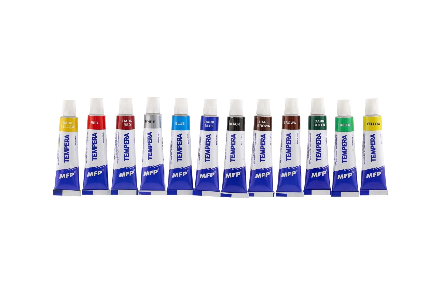 Le set de gouaches MFP en pratiques tubes en aluminium propose 12 teintes intenses pour les activités scolaires et les loisirs créatifs à la maison. Les peintures offrent une forte couvrance, sont sans substances toxiques et conviennent parfaitement à la peinture au pinceau comme au doigt. Idéales pour le papier et le carton, elles se mélangent facilement et donnent des résultats lumineux et marqués.