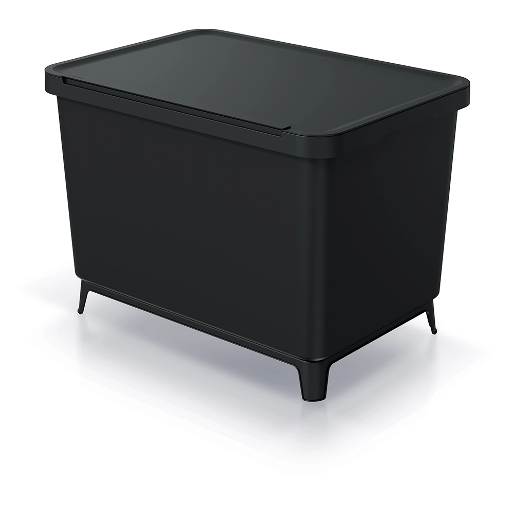 La base amovible avec pieds maintient la poubelle fermement en place. Le plastique recyclé de qualité et les poignées ABS solides assurent une longue durée de vie.