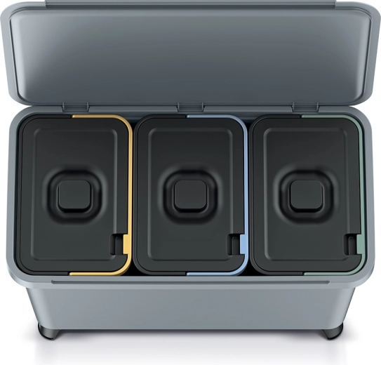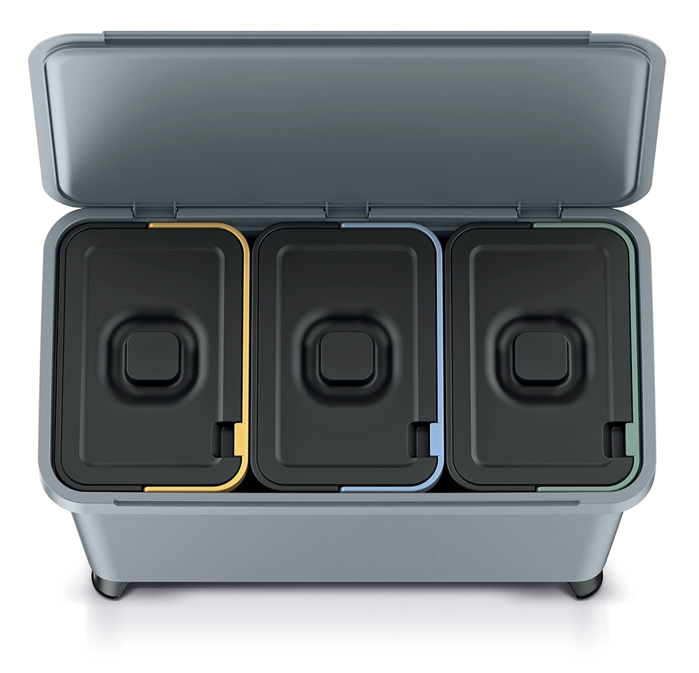 - Tri intuitif : couvercles jaune, bleu et vert pour distinguer clairement les fractions de déchets.