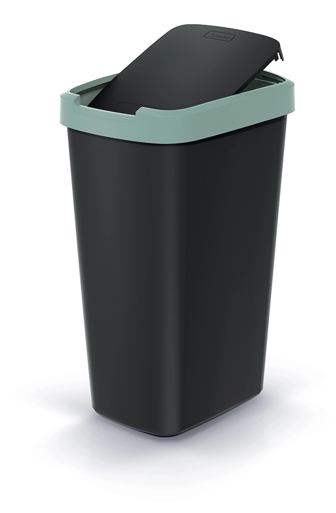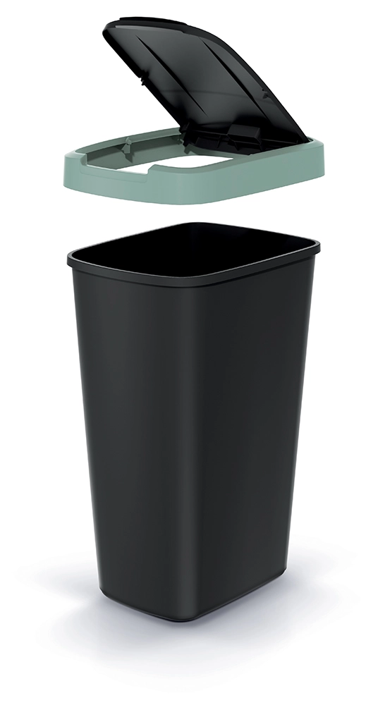Élégante et peu encombrante, la poubelle de 45 litres est un choix idéal pour la cuisine, le bureau et les petits espaces. Le corps en plastique résistant, noir mat, est rehaussé d’un discret liseré vert clair qui apporte une touche moderne et facilite l’harmonisation avec l’intérieur.