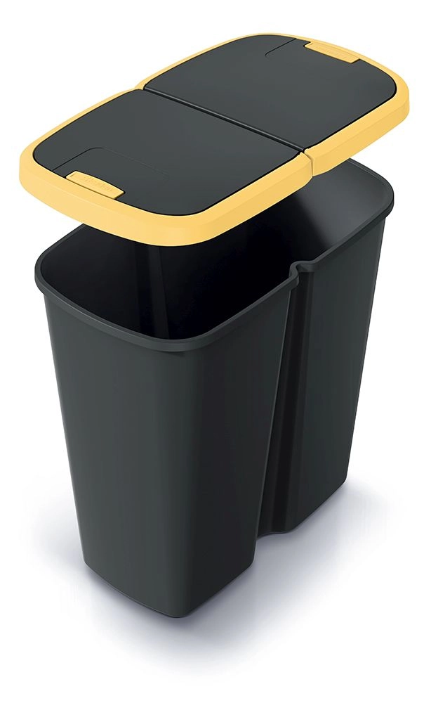 Poubelle pratique de 45 l avec double couvercle offrant un tri des déchets facile à la maison comme au bureau. Grâce à l’ouverture par bouton, la manipulation est confortable et hygiénique, tandis que le plastique résistant et les dimensions compactes assurent une longue durée de vie et un gain de place. Le couvercle jaune contrasté facilite la différenciation visuelle lors du tri.