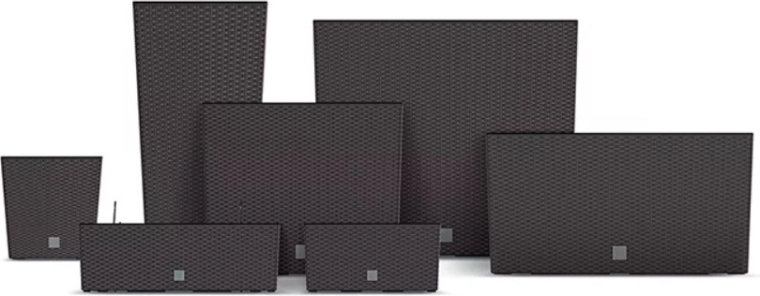 La surface décorative imitant le rotin confère à la jardinière un caractère élégant et s’accorde aisément avec le mobilier, sur la terrasse comme au salon.