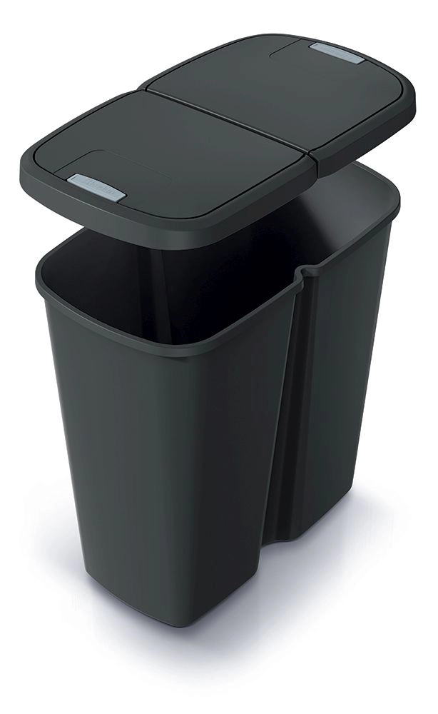 Gardez l’ordre et triez vos déchets intelligemment. Cette élégante poubelle en plastique recyclé offre une ouverture hygiénique et pratique par bouton et une solution flexible pour la séparation des déchets — des ordures ménagères au plastique ou au papier. Grâce à son profil mince, elle s’intègre facilement même dans les petits espaces sans compromettre la capacité.