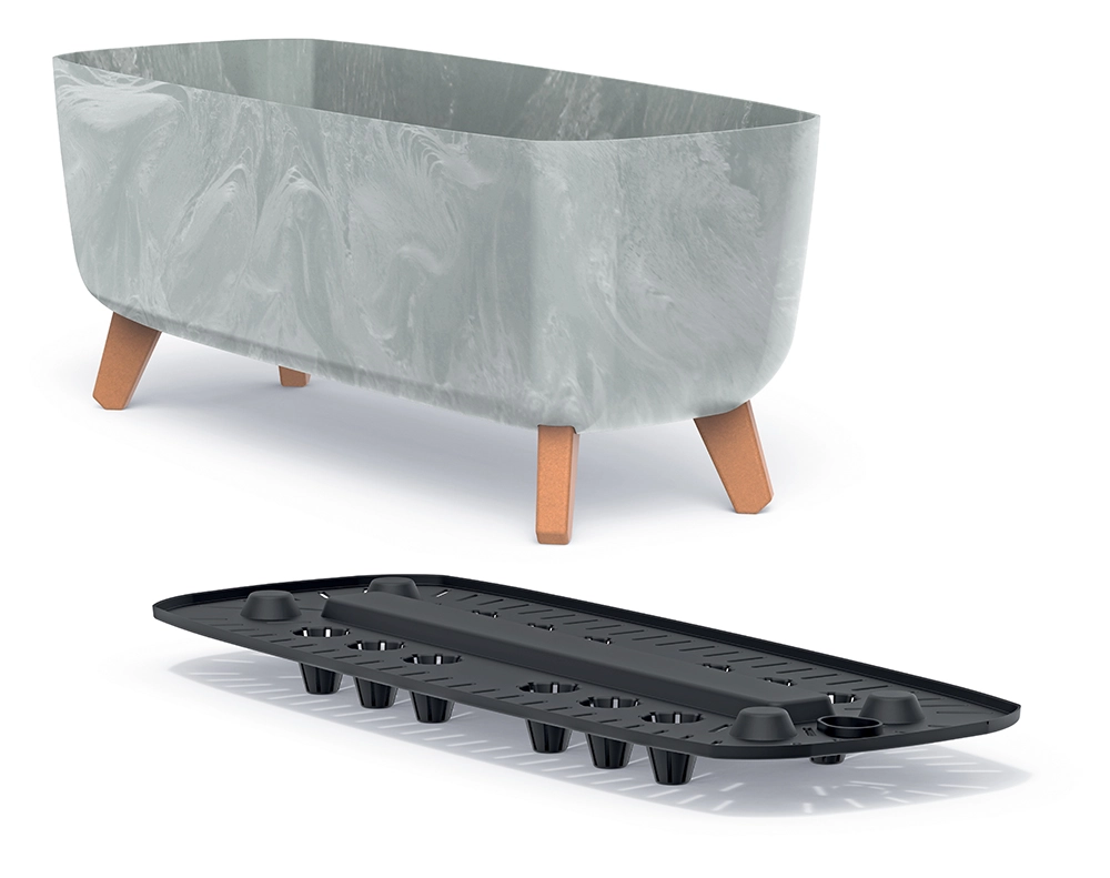 Quatre pieds amovibles augmentent la stabilité, améliorent la circulation de l’air sous la jardinière et favorisent l’évacuation de l’humidité.