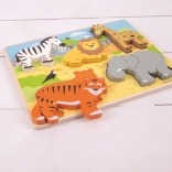Découvrez un puzzle à encastrer en bois amusant sur le thème du safari, qui favorise le développement précoce de l’enfant. Le puzzle propose de grandes pièces faciles à saisir, grâce auxquelles les enfants exercent leur motricité fine, leur perception sensorielle et leur concentration. La planche de base imprimée aide à associer correctement les formes et les couleurs et augmente la valeur éducative du jeu.