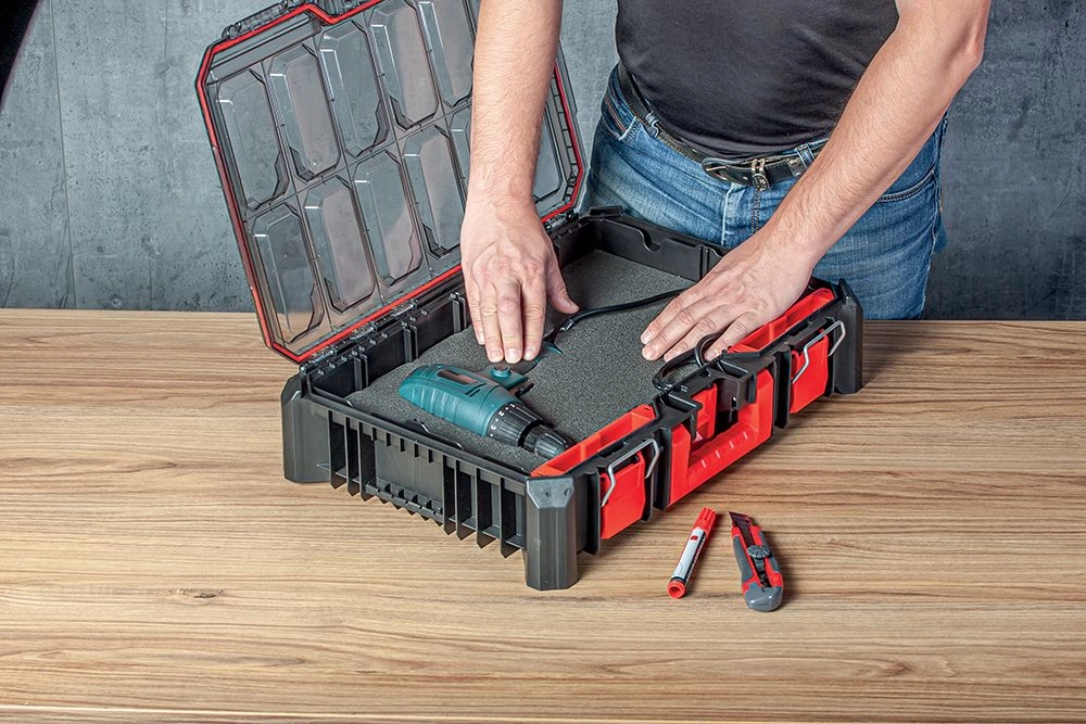 La mousse permet de créer des découpes exactes pour les outils, qui restent bien en place — sans glisser ni s’abîmer pendant le transport.