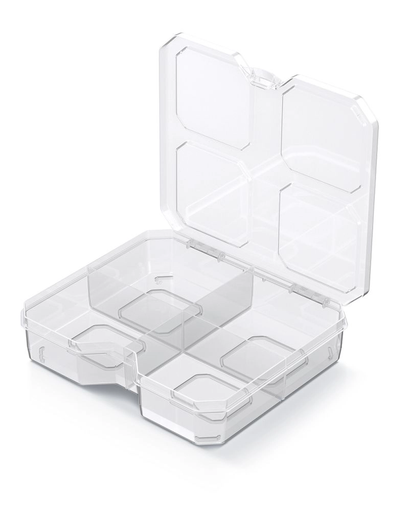 Gardez de l’ordre à l’atelier comme à la maison avec l’organiseur pratique SQR box. Ce classeur léger mais robuste, en plastique de qualité, propose une disposition étudiée en 4 compartiments fixes, afin que votre petit matériel soit toujours à portée de main sans recherches inutiles. Sa conception transparente permet de vérifier immédiatement le contenu sans l’ouvrir.