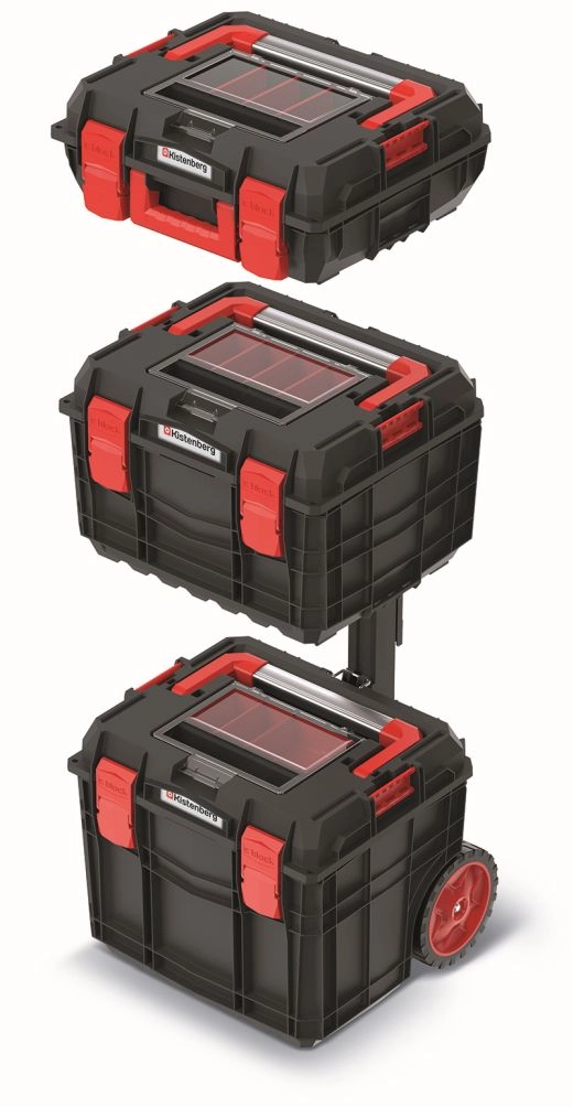 Les valises sont fabriquées à partir d’un mélange de polymères à résistance accrue, complété par des éléments en ABS et des charnières métalliques pour une longue durée de vie. Le joint contre la poussière et l’eau protège le contenu même dans des conditions exigeantes. La construction modulaire permet de transporter l’ensemble comme un seul bloc ou d’utiliser uniquement la valise choisie selon les besoins du moment.