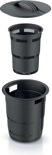 Grâce à sa hauteur compacte de 25 cm et à son couvercle amovible, la manipulation et le remplissage sont faciles. Le plastique robuste résiste à l’humidité et aux intempéries, permettant un fonctionnement toute l’année sans difficulté. Convient pour les épluchures de légumes et de fruits, le marc de café, les petits déchets végétaux ou les coquilles d’œufs concassées.