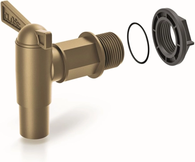 Robinet pratique pour une évacuation et un puisage aisés de l’eau de pluie depuis un tonneau. Compatible avec les tonneaux WATERFORM et ARVES, en finition élégante dorée pour un aspect esthétique et une manipulation facile.