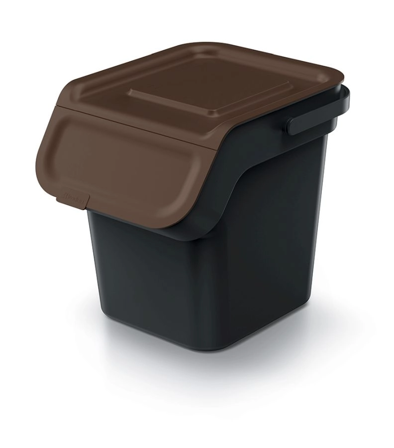 Chaque bac est fabriqué en plastique noir recyclé et équipé d’un volet coloré pour identifier facilement les fractions (papier, plastique, bio, verre). Le filtre au charbon actif remplaçable absorbe efficacement les odeurs, tandis que le cadre intérieur maintient le sac bien en place sans glisser.