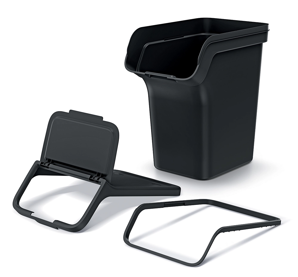 Chaque bac est en plastique noir recyclé, résistant à l’usure courante. À l’intérieur, un cadre amovible pour la fixation des sacs facilite le remplacement et maintient l’intérieur propre. Grâce à leurs dimensions compactes, ces bacs conviennent parfaitement aux cuisines, celliers, bureaux et petits espaces professionnels.