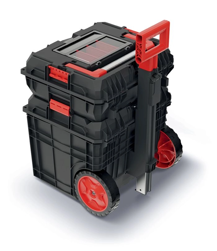 Ensemble pratique de deux valises à outils pour une organisation claire et un transport sécurisé. La plus petite valise propose un organiseur transparent pour les petites pièces, tandis que la plus grande, avec roulettes et plateau profond, accueille des outils volumineux. Structure en plastique résistante, système de verrouillage et joint compact pour protéger le contenu de la poussière et de l’humidité.