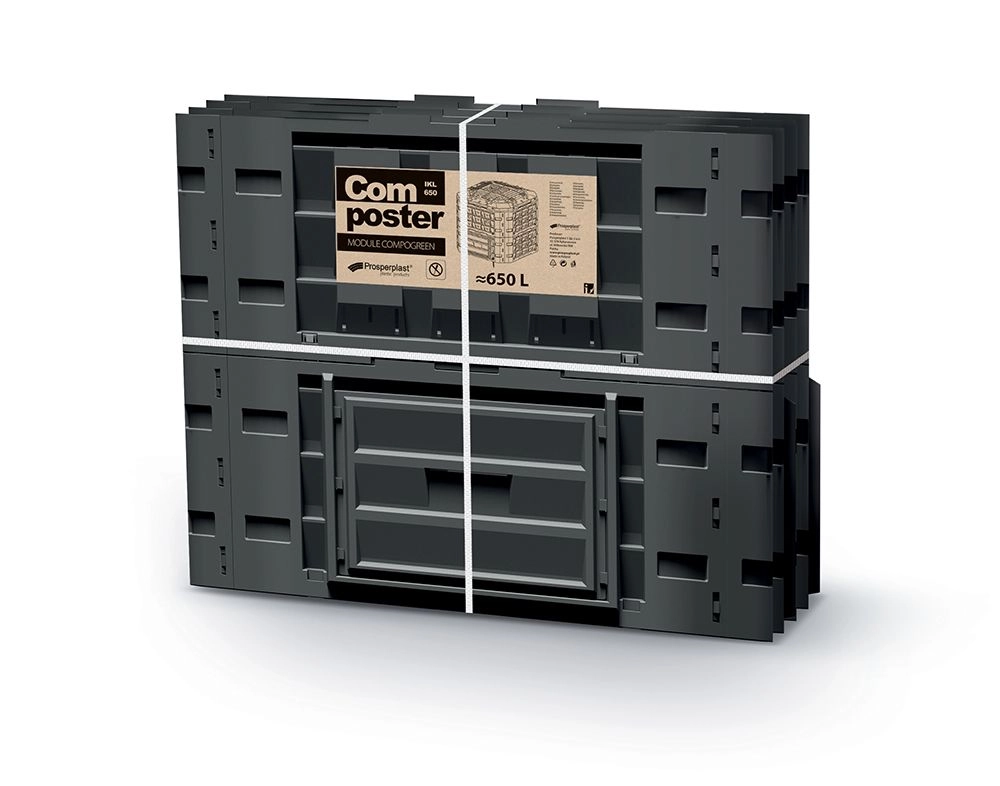 Le composteur COMPOGREEN VARIO 650 l est une solution robuste pour les jardins de taille moyenne à grande. Des panneaux modulaires bien ventilés favorisent une humidité optimale et un apport en oxygène, ce qui conduit à une production plus rapide d’un compost de qualité. Le couvercle supérieur facilite l’ajout quotidien d’herbe coupée, de feuilles ou de restes de cuisine, tandis que les portes inférieures permettent de récupérer aisément l’humus fini.