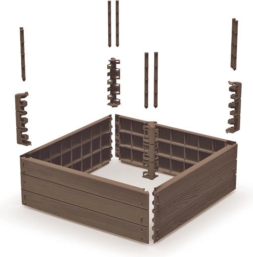 Le carré potager surélevé BASE WOODY, en teinte brique rustique, offre un jardinage confortable sans se pencher inutilement, une meilleure protection des plantes et un excellent contrôle du sol et de l’arrosage. Le plastique résistant à texture bois est sans entretien, supporte les caprices de la météo et, grâce à son montage facile sans outils, se met en place en un rien de temps. Avec deux modules, vous créez un bac plus haut pour les plantes à enracinement profond.