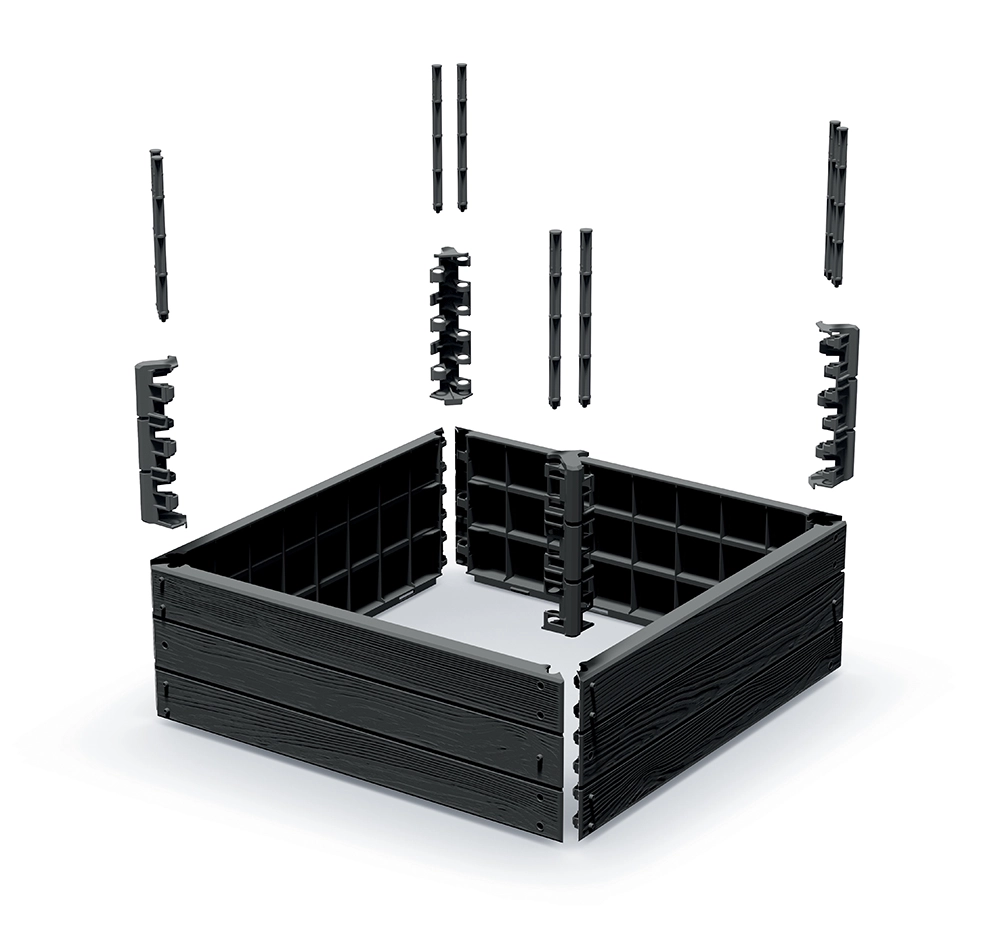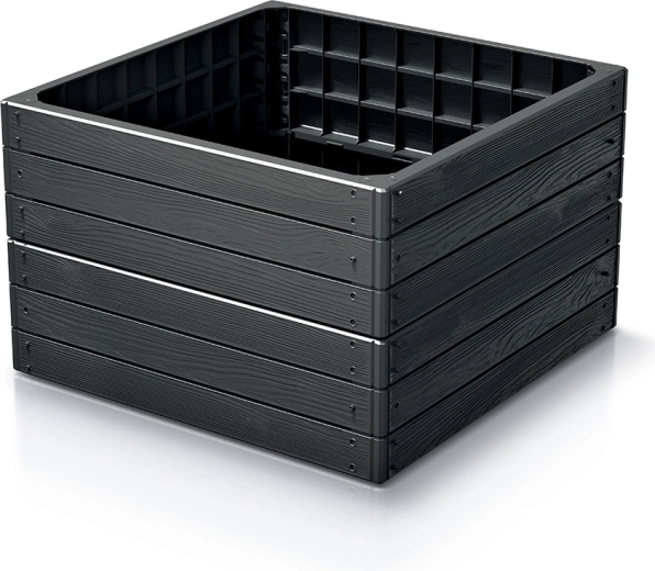 La structure sans fond améliore la santé des plantes – elle permet aux racines de s’enraciner dans le sol et assure l’évacuation naturelle de l’excès d’eau. Grâce au système empilable, vous pouvez augmenter facilement la hauteur du carré, réduire les efforts du dos et l’adapter à différents types de plantations.