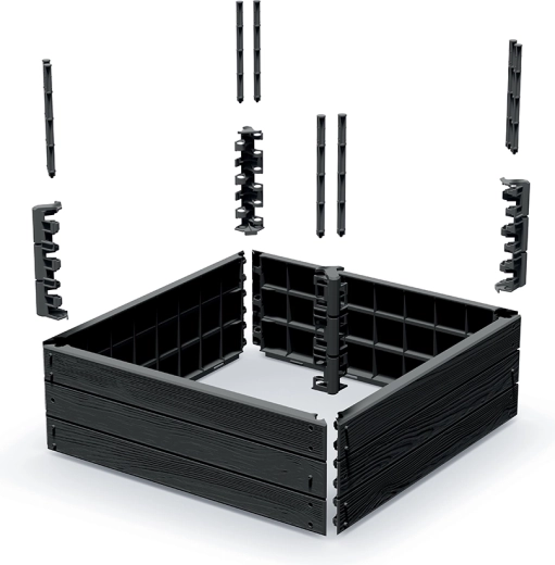 Le carré potager surélevé BASE WOODY en couleur anthracite offre une culture confortable des herbes, légumes et fleurs au jardin, sur la terrasse ou le balcon. Grâce à son imitation bois réaliste et à son matériau robuste, il est stylé, résistant aux UV et aux intempéries et requiert un entretien minimal. La structure sans fond assure un drainage naturel et le contact avec le sol, tandis que le design empilable permet de rehausser la hauteur pour travailler plus confortablement. Montage rapide sans outils pour une utilisation immédiate.