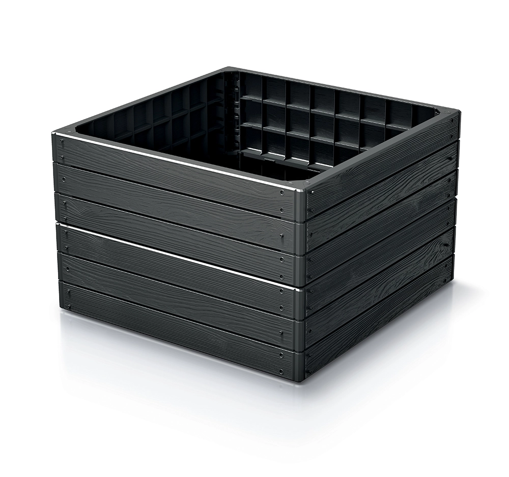 Créez des plates-bandes organisées même dans les petits espaces. BASE WOODY associe un look moderne à texture bois et une fonctionnalité pratique. Le plastique résistant supporte la pluie, le soleil et le gel, de sorte que le carré reste durablement esthétique et stable sans nécessiter de peinture ni d’entretien particulier.