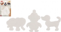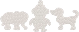 Le kit Hama de plaques pour perles à repasser permet aux enfants dès 5 ans de créer des images colorées grâce aux plaques en plastique blanc en forme d'éléphant, de pingouin et de chien.