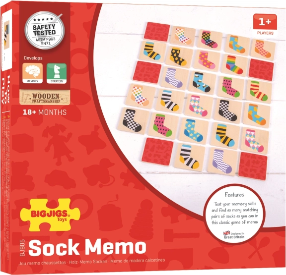 Enrichissez les moments de jeu avec vos enfants grâce au pexeso en bois avec chaussettes. Ce jeu stimule la mémoire et favorise la concentration ainsi que le développement des compétences stratégiques. Tout ce que vous avez à faire est de disposer les 32 pièces en bois face cachée et commencer à retourner deux pièces à la fois. La difficulté augmentant progressivement, le joueur tente d'associer les paires de chaussettes et d'adopter de nouvelles stratégies.