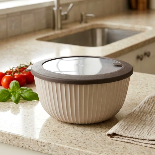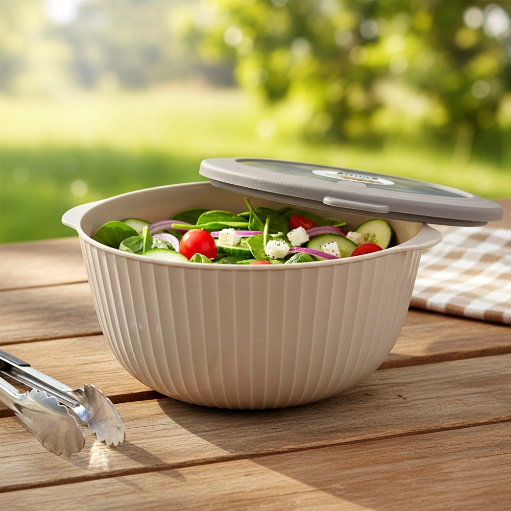 Pratique, ce bol de cuisine avec couvercle d’une capacité de 2,5 l est idéal pour le mélange, le service des salades, la conservation et le réchauffage au micro-ondes. Il dispose d’un couvercle transparent avec valve, d’un joint en caoutchouc et est fabriqué en matériau sans BPA, résistant de -25 °C à +95 °C. Entretien facile, compatible lave-vaisselle.