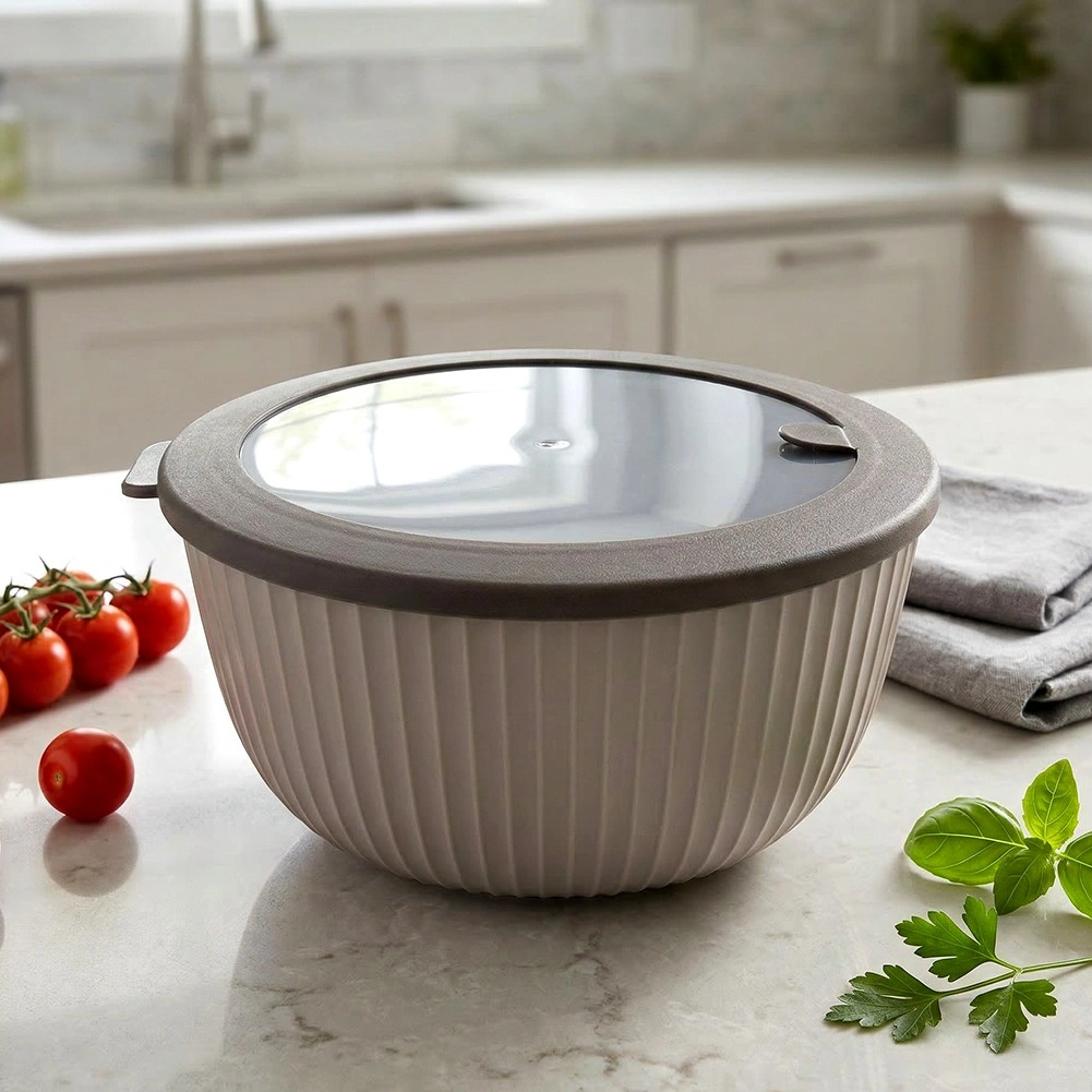 Ce bol robuste dans une teinte beige moderne facilite la cuisine au quotidien et la préparation de grandes portions. Grâce à la fenêtre transparente du couvercle, vous gardez un œil sur le contenu sans l’ouvrir, tandis que la valve vapeur permet un réchauffage sécurisé au micro-ondes. Le joint d’étanchéité aide à préserver la fraîcheur et à minimiser les odeurs.